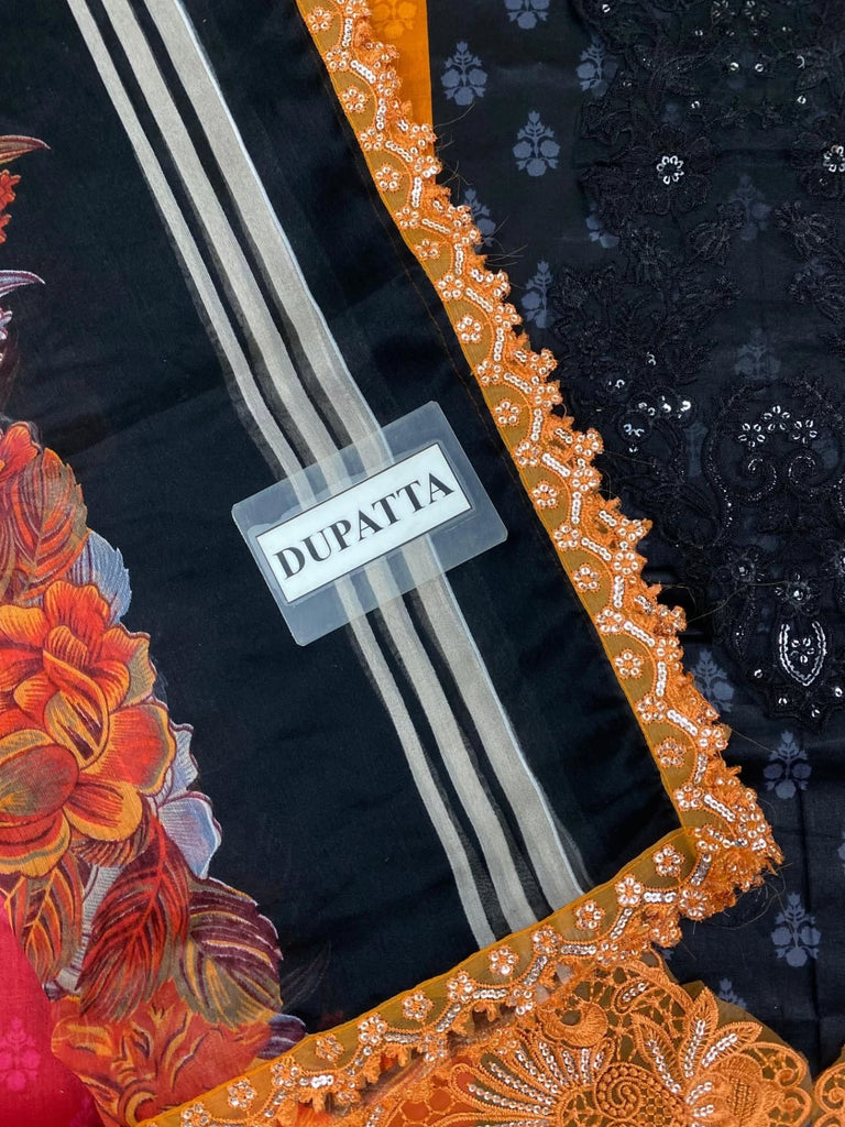 Aneela.s Black Skin Lawn – 3 Piece Unstitched Embroidered Lawn Suit