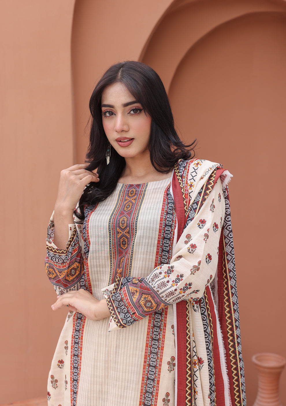 A refined blend of comfort and style, this 3-piece unstitched lawn suit from BinNoor’s latest Volume 19 (2025) collection is perfect for everyday elegance. Crafted from Airjet Bana Dora Lawn, the set includes a beautifully printed shirt and dupatta paired with a premium shuttleless cotton trouser.