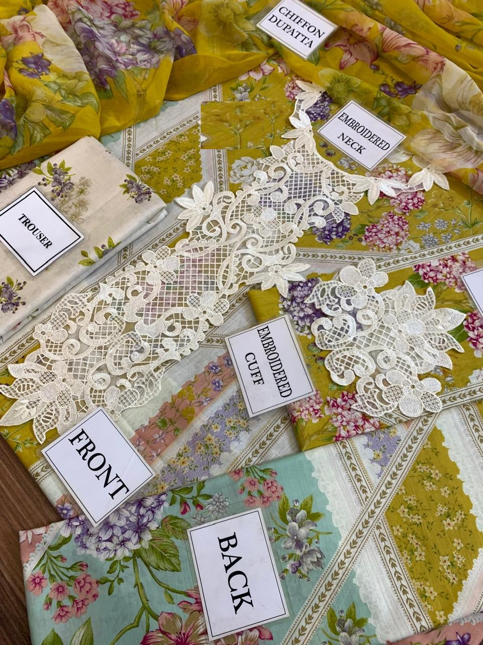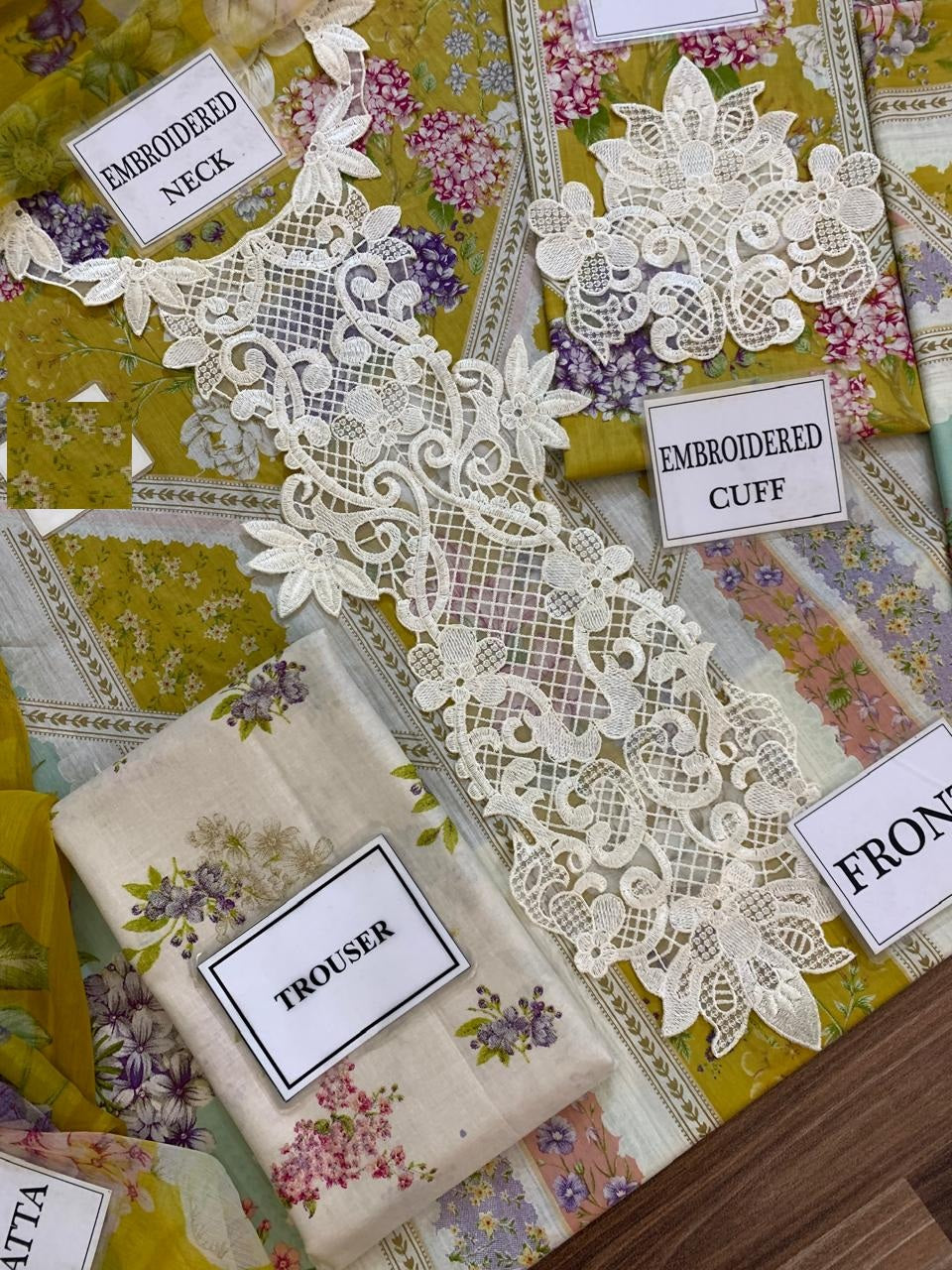 • 👗 Shirt Front: Printed Lawn with Heavy Embroidered Spengle Work Neckline