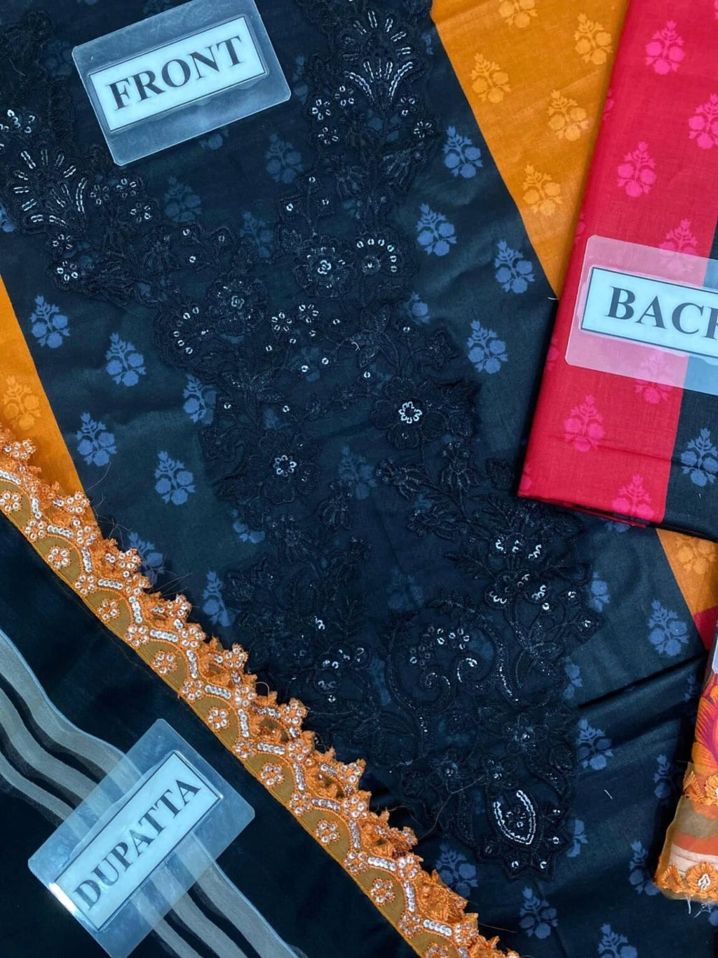 π¬οΈ Printed Chiffon Dupatta with 4-Side β¨ Embroidered Sequin Lace
